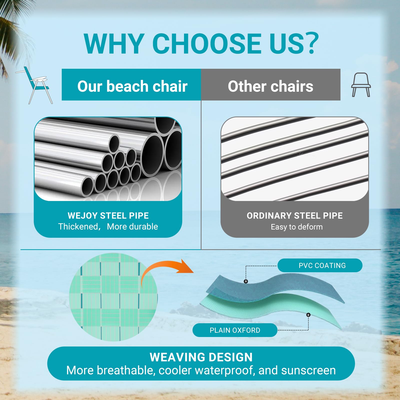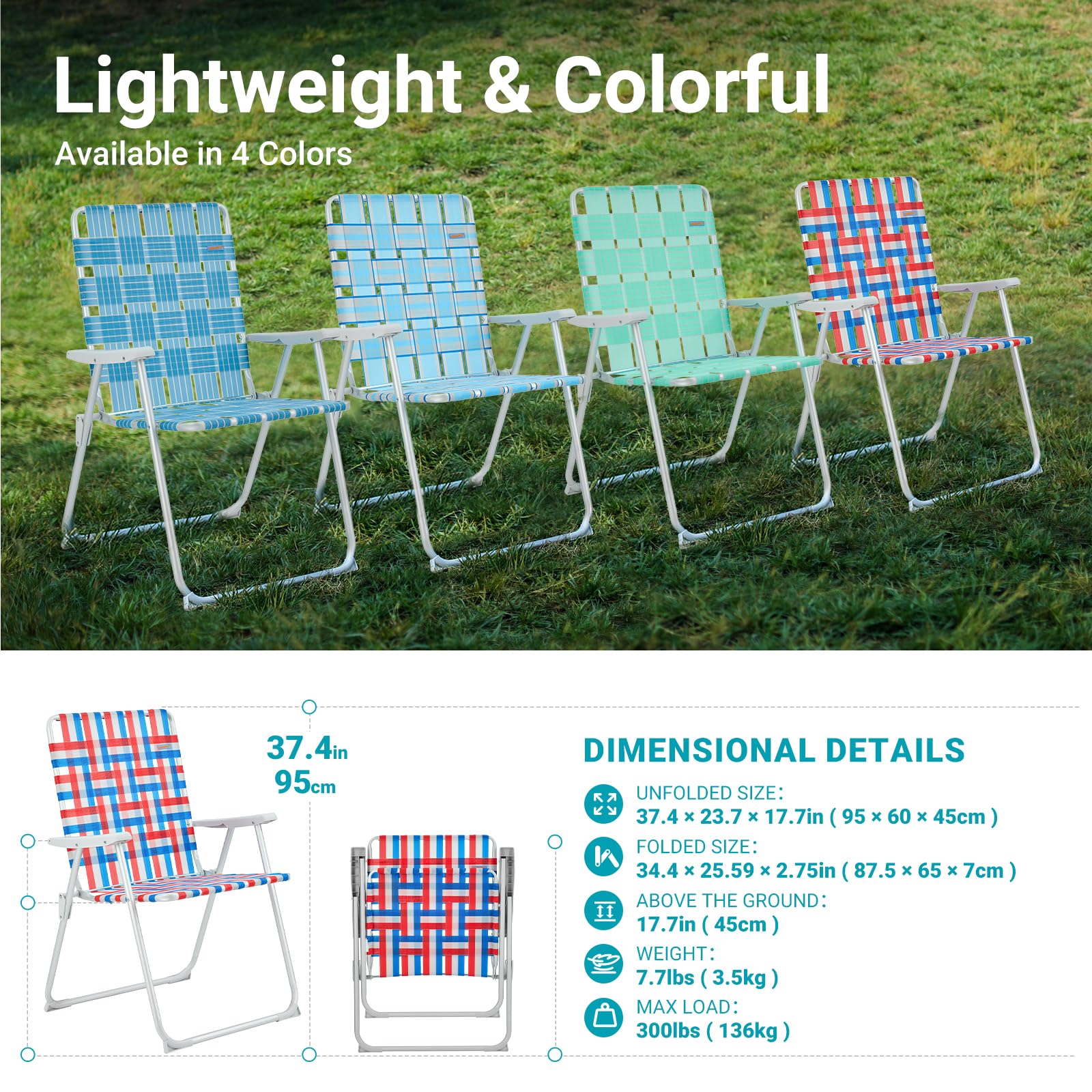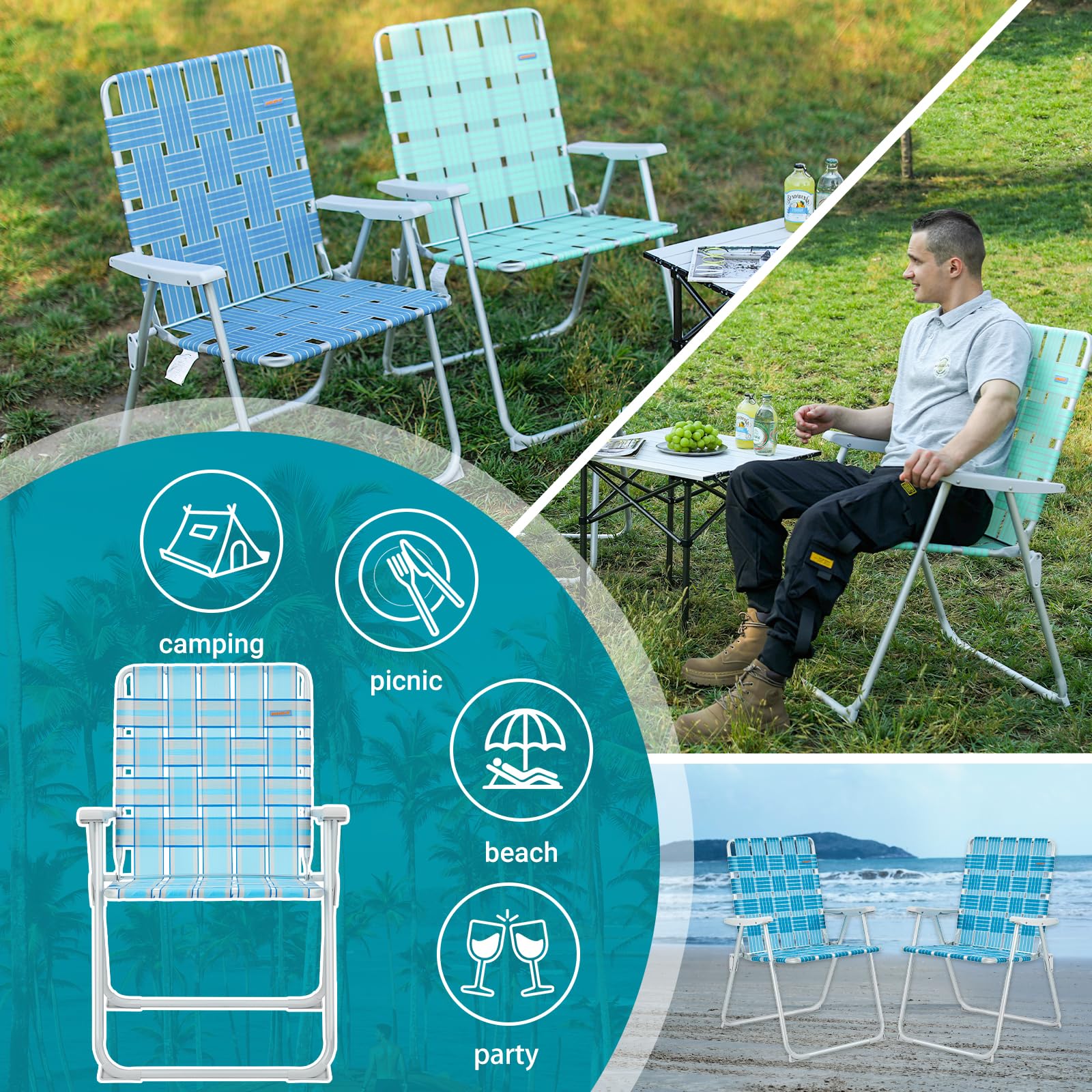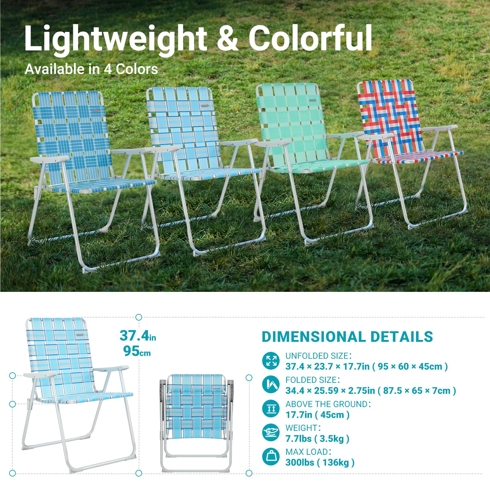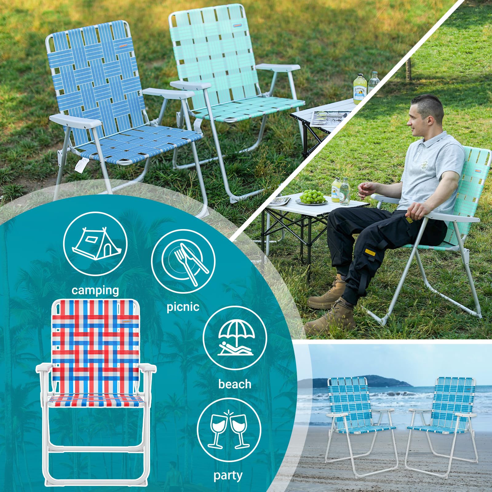- Cool and Resilient: The seat surface is made from PP material that reduces heat conduction, mildew, fading, and the effects of UV rays. The classic weaving process ensures breathability and comfort for an enjoyable lounging experience.