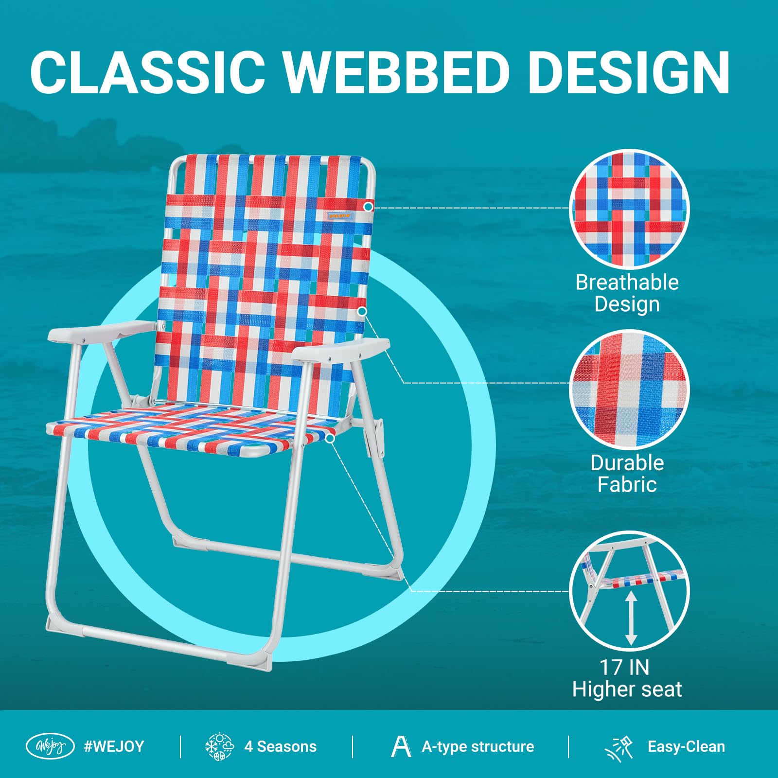 WEJOY Folding Oversized 17-In High back Webbed Lawn Beach Chair