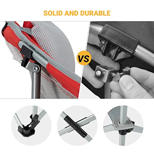 - Thickened carbon steel frame with plastic injection process, rustproof, strong and deformation-free. The double-layer mesh seat surface is bonded with high-quality Oxford cloth, which is wear-resistant and prevents scratches and cracks on the surface when using it outdoors. Ideal outdoor chair for camping picnic fishing and garden use.
