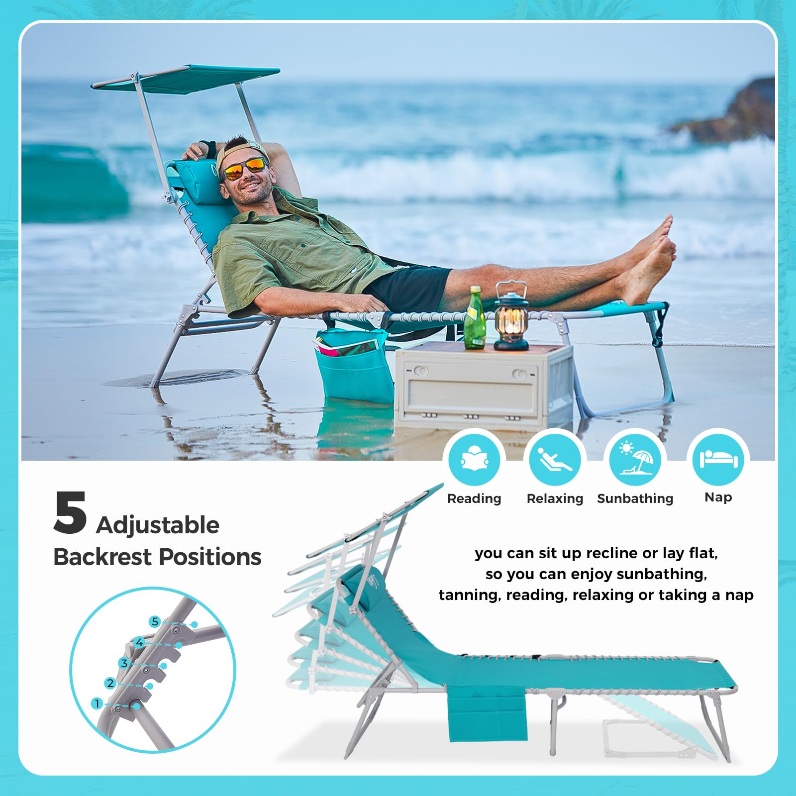Stay shaded and comfortable under the adjustable angle sunshade, allowing you to block or embrace the sun's rays as desired. Perfect for reading or simply enjoying the outdoors without the need for a hat, this feature adds versatility to your beach lounging experience.